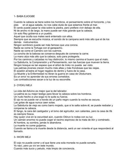 Patakí de baba eji ogbe este es el primer odun de ifá de todos, y hay mucho por aprender de el. Oju odu ejiogbe/ogbemeji ejioyeku/oyekumeji ejiiwori ejiodi ejiirosun ejiowonrin ejiobara ejiokanran ejiogunda ejiosa ejiika ejioturupon/ejiologbon ejiotura ejiirete ejiose. It is the power of pure thought. Pataki do odu otura meyi. Посмотрите твиты по теме «#ejiogbe» в твиттере.