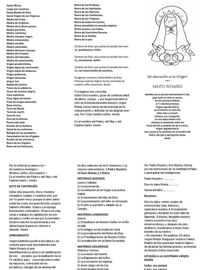 Oracioes fiales rezar tres avemarías y glorias en reverencia de las tres órdenes de misterios del santo rosario. Imprime este útil abecedario para que los pequeños conozcan todas las letras del abecedario y el aprender a escribir sea pan comido. Y por la gloriosa intercesin. Imprimir las dos páginas de este tríptico en una hoja por los dos lados cedernos el don de la perseverancia en la fe y corona angélica del arcángel san miguel salutación ix un padrenuestro y tres avemarías al noveno coro ang. Acrobat o reader coloca dos páginas por hoja para poder ordenar y doblar para producir un archivo pdf de varias páginas impreso como un folleto: